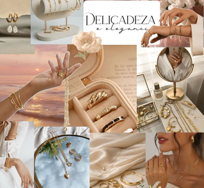 Nossas semijoias carregam luz, sutileza e significado — para mulheres que expressam quem são nos pequenos detalhes